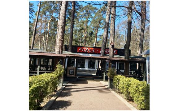 Далее, справа, появляется живописный участок парка с рестораном, в который мы обязательно зайдем, когда проголодаемся.