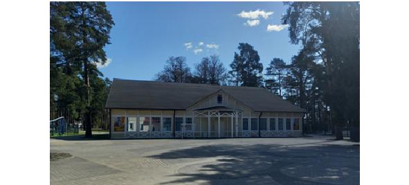Наконец, появилось интересное здание слева. В этом одноэтажном здании с названием «Танцевальный павильон», я неоднократно бывал на различных выставках картин, а вот на вечерах танцев не был ни разу. А объявления о вечерах танцев по городу попадаются до сих пор.