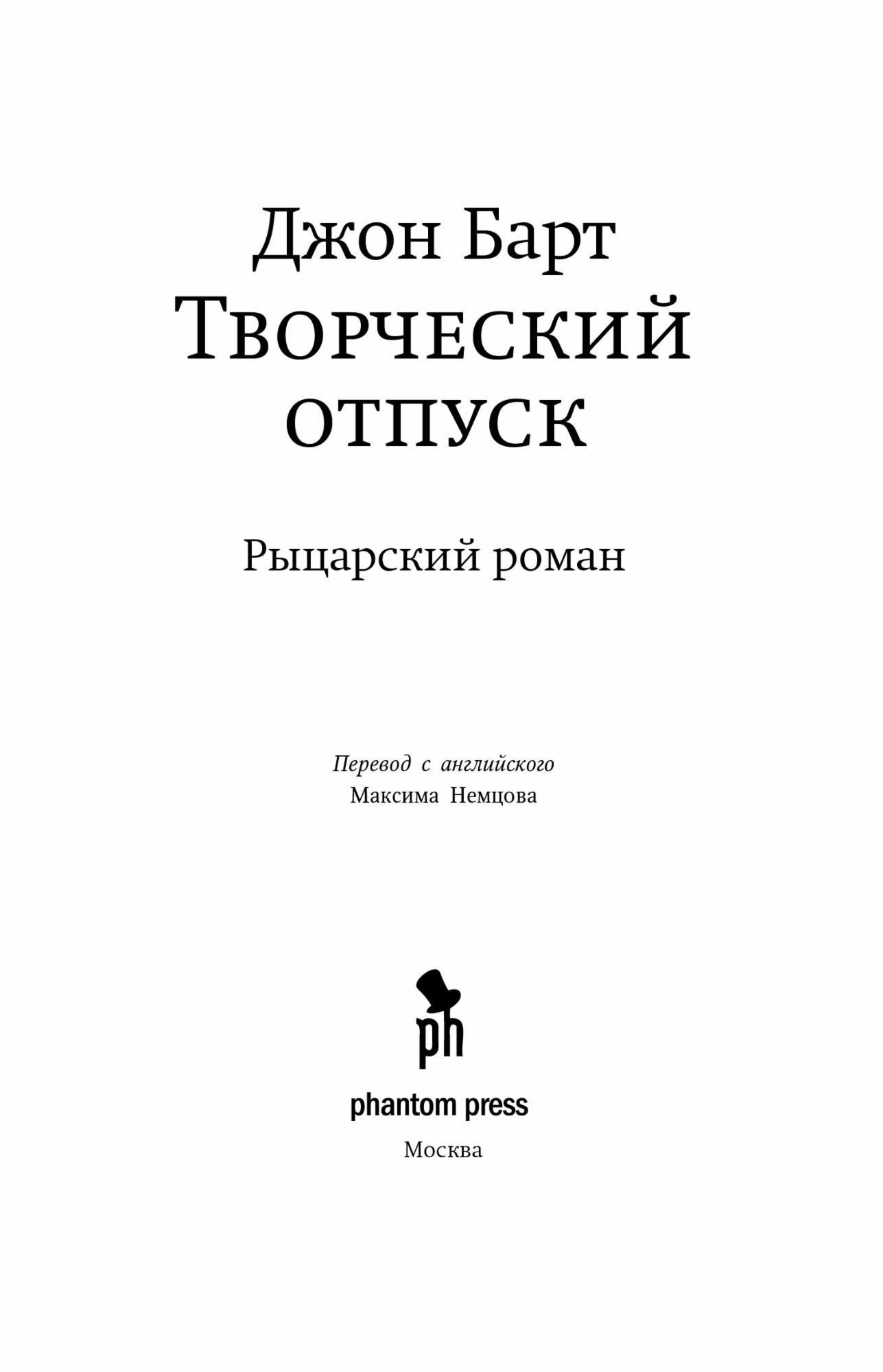 «Творческий отпуск. Рыцарский роман», написанный между 1978 и 1981 годом после моих семилетних занятий романом «ПИСЬМЕНА», действительно оказался творческим отпуском от этих затянувшихся замысловатых трудов. Первоначальным рабочим названием проекта было «Половое воспитание и творческий отпуск»; я замышлял не книгу, а причудливого сиамского близнеца, состоящего из фантастического игрового сценария (о постмодернистском любовном романе между скептически настроенным сперматозоидом и сопоставимо бдительной яйцеклеткой), за коим следует реалистический роман, а в нем действуют средних лет Homo sapiens мужского пола, не так давно вышедший в отставку из ЦРУ, и его супруга — несколько моложе, недавно забеременевшая, быть может, от консуммации любовного романа из того самого сценария, при этом она еще может решиться на аборт. К худу ли, к добру ли, но, как и случается при довольно многих двуплодных беременностях, потомок послабее угас in utero (дабы воскреснуть так или иначе в романе «Приливные преданья» [1987]). Выжила та работа, которую вы сейчас держите в руках, изложенная с точки зрения, каковую, полагаю, сам я и изобрел: сдвоенный-голос-от-первого-лица хорошо спаренной пары.