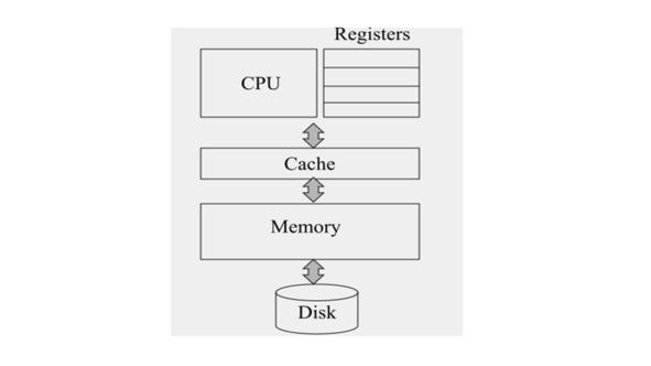 Таким образом, по мере того, как вы поднимаетесь от диска, к основной памяти, кешу, регистрам, увеличивается скорость и уменьшается память.