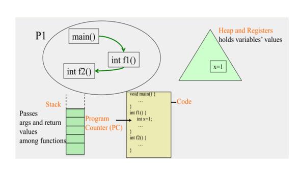 Поэтому процесс содержит один стек, и этот стек используется этими функциями или методами, чтобы передать аргументы и вернуть значения.