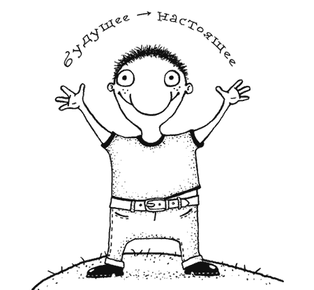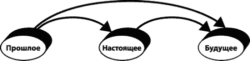 Эта схема показывает, что ты находишься сейчас в Настоящем, потому что тебя привело сюда твое Прошлое. Соответственно, твое Настоящее формирует твое Будущее.