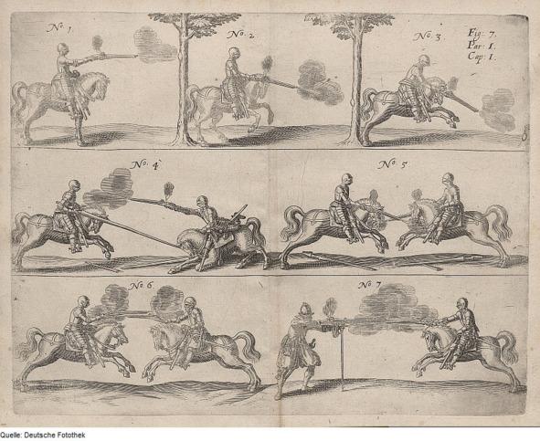 Чаще всего кавалерийский бой середины XVII века принимал формы повторяющихся коротких и острых столкновений, в которых нападавщие схватывались с оборонявшимися и после хаотичного неприцельного пистолетного залпа или нескольких сабельных ударов разъезжались в стороны. Потом эскадрон собирался заново вместе, заново выстраивал «клин» и повторял атаку. Так он «долбил» противника до тех пор, пока тот не покидал поле боя. Для этого нужно было атаковать его не менее 3—4 раз.
