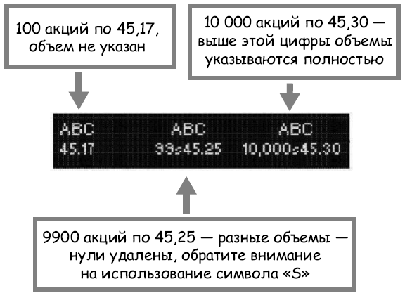 Хотя два примера похожи, есть одно ОГРОМНОЕ различие, и оно заключается во времени отображаемой информации. Можно только удивляться, как знаменитые трейдеры прошлого ухитрялись добиваться успеха, несмотря на задержки в данных на тикерной ленте, которые могли длиться от нескольких минут до нескольких часов. Сегодня вся наблюдаемая нами информация доступна в режиме реального времени, независимо от того, отображается ли она на электронном тикере, электронном графике или в экранном тикере с данными первого и второго уровней. Нам повезло, ведь нам сегодня торговать в разы легче.