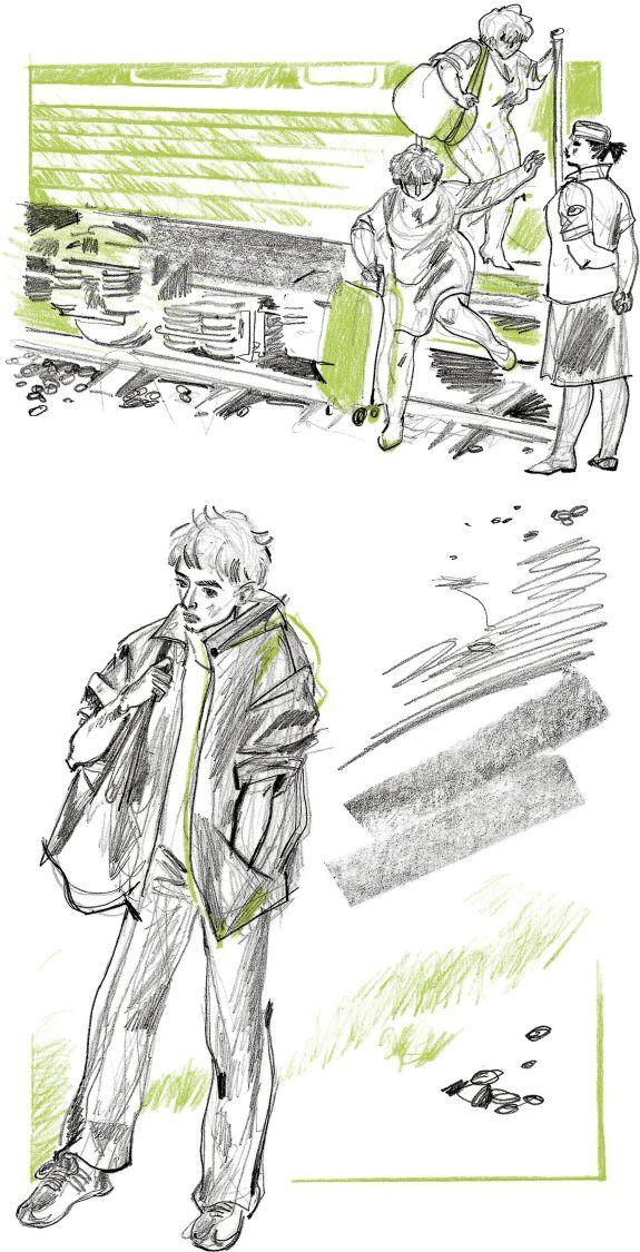 Поезд увозит Лёньку всё дальше и дальше от любимого города. Колёса отстукивают: тук-ту-да, тук-ту-да, тук-ту-да…