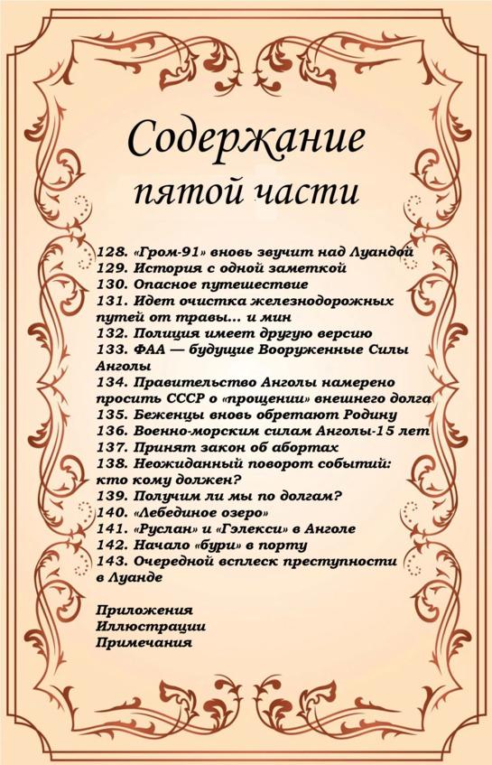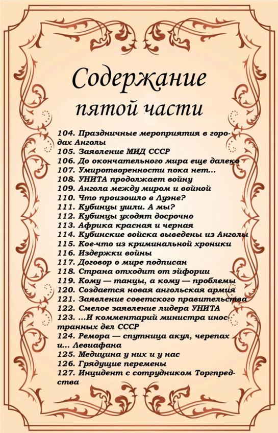 Повторюсь, в том виде, в котором изначально была написана книга, она представляла собой последовательное изложение в хронологическом порядке событий из общественно-политической жизни этой воюющей африканской страны, быта советских «колонистов», зарисовки из жизни простых ангольцев. Как таковой, единой сюжетной линии не было, каждая глава представляла собой отдельный эпизод, формирующийся вокруг одного события, одной проблемы, одного конфликта. Я описывал те события, которые происходили со мной или вокруг меня.