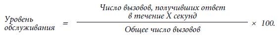Обычно, чтобы отобразить уровень обслуживания, используется двоеточие или слеш: X:Y или X/Y, где X — процент вызовов, а Y — секунды. Например, 80:20 (80/20) означает, что 80% вызовов ждали ответа оператора не более 20 секунд. Уровень обслуживания — один из основных показателей эффективности операторского центра. Более подробно он будет рассмотрен в главе 5.