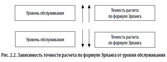 Соответственно, чем выше в операторском центре уровень обслуживания и чем меньше потерянных вызовов, тем точнее работает формула Эрланга. И наоборот, чем хуже Service Level, тем менее точным получается результат (рис. 2.2).