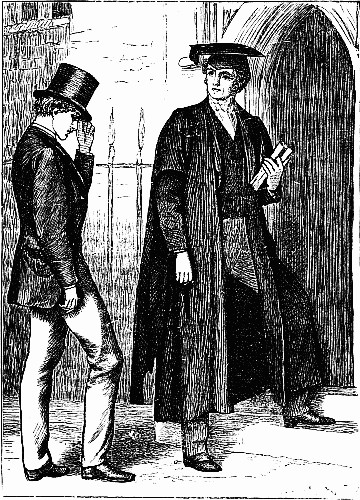 As he walked up to the town, he felt shy and afraid of being seen, and took the back streets; why, he didn't know, but he followed his instinct. At the school-gates he made a dead pause; there was not a soul in the quadrangle—all was lonely, and silent, and sad. So with another effort he strode through the quadrangle, and into the School-house offices.