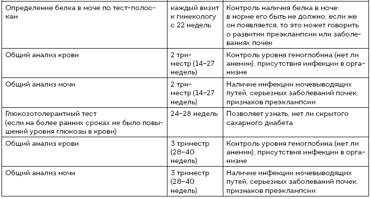 С 22 недели беременности обязательным становится измерение белка в моче тест-полосками (если в женской консультации таких полосок нет, врач попросит будущую маму каждый раз перед приемом сдавать общий анализ мочи). Наличие белка в моче никак не ощущается беременной женщиной, но может указывать на проблемы с почками или развитие преэклампсии.