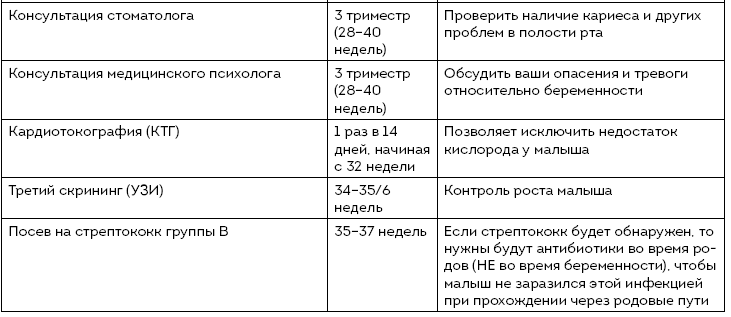 Всех перечисленных выше анализов достаточно, если беременность протекает хорошо. Доктор может назначить дополнительное обследование в случаях, когда что-то идет не так.