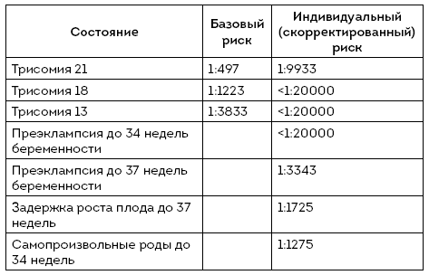 Результаты УЗИ и анализа крови вносят в специальную программу, которая выдает итоговые риски. Важно понимать, что первый скрининг не ставит окончательный диагноз, а лишь определяет степень риска наличия тех или иных патологий. Внимание: низкие риски не гарантируют отсутствие патологии!