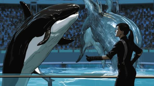 Зажглись прожекторы и осветили плавучую платформу, на которой выстроились дрессировщики, участники «Шоу касаток», которое проходило в бассейне морского аквариума в Сан-Диего.