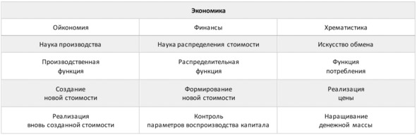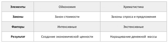 совокупность которых характеризует внутреннюю логику воспроизводственного процесса в сфере ойкономии и его внешнюю логику в сфере хрематистики (рис. 1).