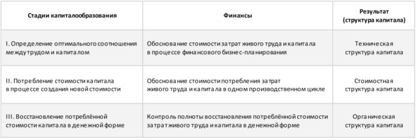 Влияние финансов на капитал-функцию поддаётся исследованию во взаимосвязи структуры капитала и соответствующей стадии капиталообразования (рис. 8).