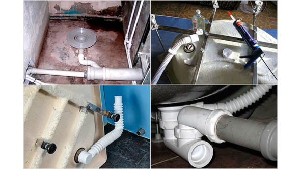 — Соединение сливного шланга кабины или ванны к канализационному стоку;