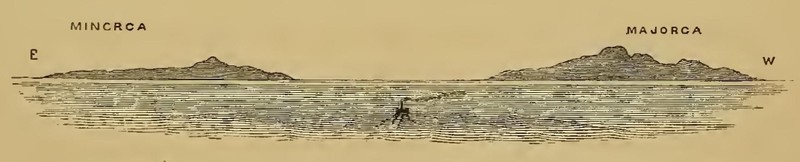 In the following little sketch we have indicated the appearance in outline of the two islands of Majorca and Minorca as we approach them going southward, passing at about equal distances between the islands.