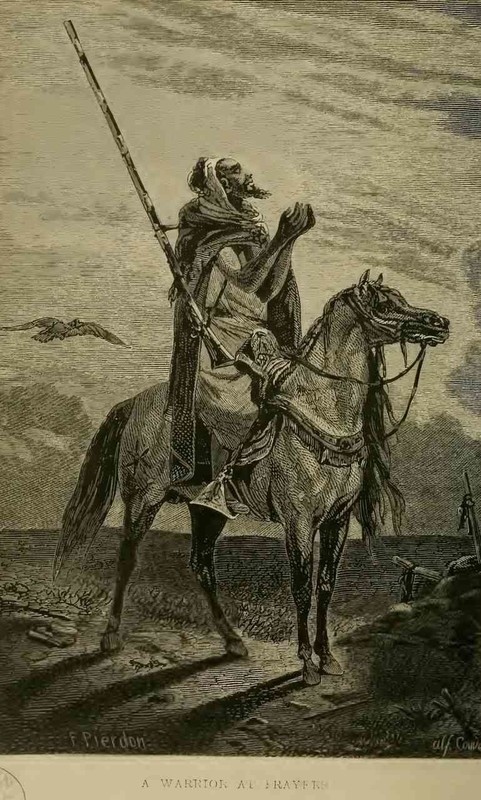 It was not the first nor the last time, that we had witnessed the Arabs at prayer, and had studied with a painter's eye their attitudes of devotion, the religious fervour in their faces, and their perfect abandon. The charm of the scene was in its primitive aspect, and in the absence of all the accessories, which Europeans are taught from their youth up, to connect in some way, with every act of public worship; and who could help being struck by the sight of all this earnestness—at these heartfelt prayers? What does the Arab see, in this mystery of beauty, in its daily recurring 'splendour and decline? Shall we say that the rising and the setting of the sun behind the hills, may not (to the rude souls of men who have learned their all from Nature), point out the entrance of that Paradise, which their simple faith has taught them, they shall one day enter and possess?