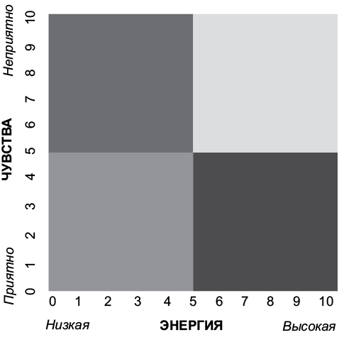 По всей вероятности, когда мы спрашиваем «как дела?», то делаем это из вежливости, а не чтобы получить честный ответ! Шерил Сэндберг в своей книге «План Б. Как пережить несчастье, собраться с силами и начать жить снова»11, написанной совместно с Адамом Грантом, рассказывает историю о том, как люди задавали женщине вопрос «как дела?» сразу после смерти ее мужа и, вероятно, ожидали типичной отговорки. Один из способов действительно узнать, что чувствует человек, — это использовать наш Измеритель настроения (рис. 2). Эмоции оценивают по двум осям (направлениям) — по уровню энергии и уровню приятности. Если человек обладает высоким уровнем и того и другого, он испытывает радость и восторг. Если обладает высоким уровнем энергии и низким уровнем приятности, то, скорее всего, он испытывает злость, недовольство или ошеломленность. Если он обладает низким уровнем энергии и низким уровнем приятности, то может испытывать скуку или грусть. И, наконец, если человек обладает низким уровнем энергии и высоким уровнем приятности, он, скорее всего, чувствует удовлетворение.