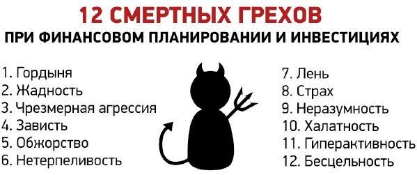 Мне нравится аналогия со смертными грехами. Да, в христианстве упоминается только о семи смертных грехах, однако в финансовом мире, согласно моему личному списку, их количество выросло до 12.
