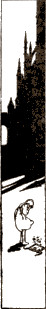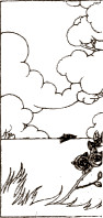 Then all that was left of him was the stick, and this fell down on the back of a Goose who was taking a walk by the side of the ditch.
