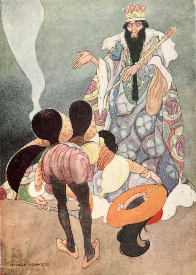 Then ten o’clock struck, and then eleven, and then twelve, and at the last stroke of midnight every one came out on the terrace, and the King sent for the Royal Pyrotechnist.