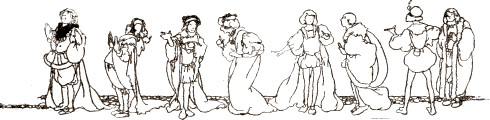 “Let the fireworks begin,” said the King; and the Royal Pyrotechnist made a low bow, and marched down to the end of the garden. He had six attendants with him, each of whom carried a lighted torch at the end of a long pole.