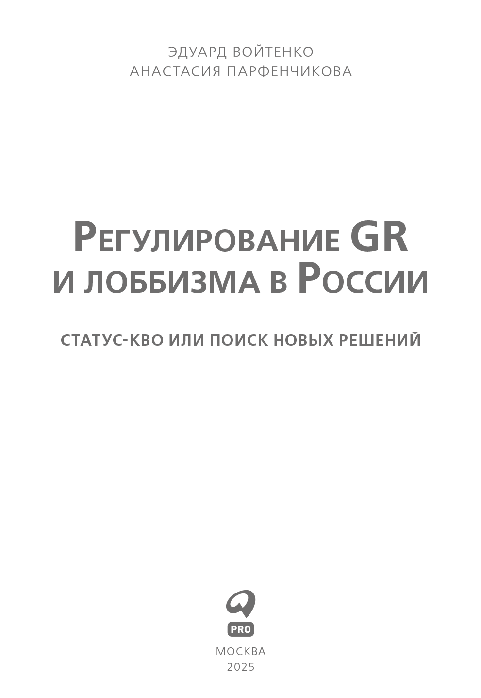 автордың кітабын онлайн тегін оқу Регулирование GR и лоббизма в России: Статус-кво или поиск новых решений