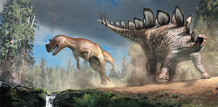 Нельзя считать впечатляющих гигантов прошлого (например, изображенных на рисунке травоядного стегозавра и рогатого теропода цератозавра) неудачами эволюции. Напротив, динозавры — одни из самых успешных животных, которые когда-либо появлялись на свет