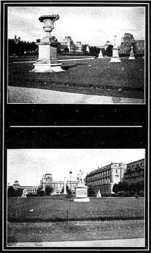 Once St. Germain was the home of royalty and all the gaiety of the court life of the Louis, and once again it was on the eve of becoming the fashionable Paris suburb, but now it is the resort of “trippers,” and its château, or what was left of it after the vandalism of the eighteenth century, is a sad ruin, though the view from its heights is as lovely as ever—that portion which remains being but an aggravation, when one recalls the glories that once were. Save the Vieux Château, all that is left is the lovely view. Paris-wards one sees a panorama—a veritable vol-d’oiseaux—of the slender, silvery loops of the Seine as it bends around Port Marly, Argenteuil, Courbevoie, St. Denis, and St. Cloud; while in the dimmest of the dim distance the Eiffel Tower looms all its ugliness up into the sky, and the domed heights of Montmartre and the Buttes Chaumont look really beautiful—which they do not on closer view.