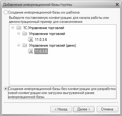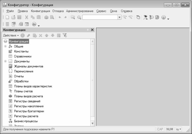 Рис. 1.10. Конфигуратор для новой информационной базы