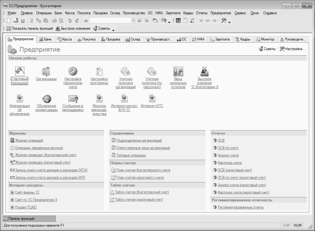 Режим «1С: Предприятие» (рис. 1.1) – это прикладное решение программы в соответствии с ее предназначением. Иначе говоря, именно в режиме «1С: Предприятие» работают бухгалтеры, финансисты, менеджеры и другие конечные пользователи программы.
