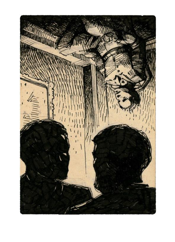 За спиной щелкнуло, кресло вновь опрокинулось, и я вторично повис вниз головой. Пока истязатели разбирались в рычагах, я разглядел еще одного господина в форме квартального надзирателя, который появился в мое отсутствие.
