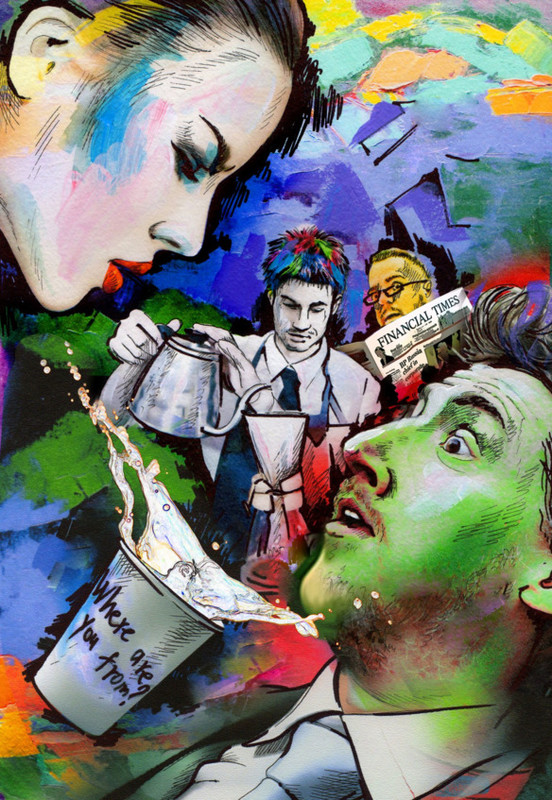Лондонцы вычисляли чужаков разными способами: по акценту, по грубовато-атлетическому телосложению, по любопытному и диковатому блеску в глазах. Бариста не раз поражался способности коренных жителей отделять зерна от плевел и часто становился свидетелем того, как в разговоре с пришлым кто-то из местных неожиданно спрашивал: «Where are you from?»[1]. Этот вопрос означал не что иное, как провал, поражение, очередную неудавшуюся попытку сойти за своего. Человека ставили на место, разом указав ему, что он здесь на положении гостя — и не факт, что желанного. Поэтому бариста чувствовал себя увереннее, отгородившись от неприятного вопроса стойкой кафе. Тут его не трогали, а он мог рисовать, зарабатывать на жизнь, откладывать на учебу и, конечно же, слушать разговорную речь, пусть в обрывочном, но идеальном исполнении.