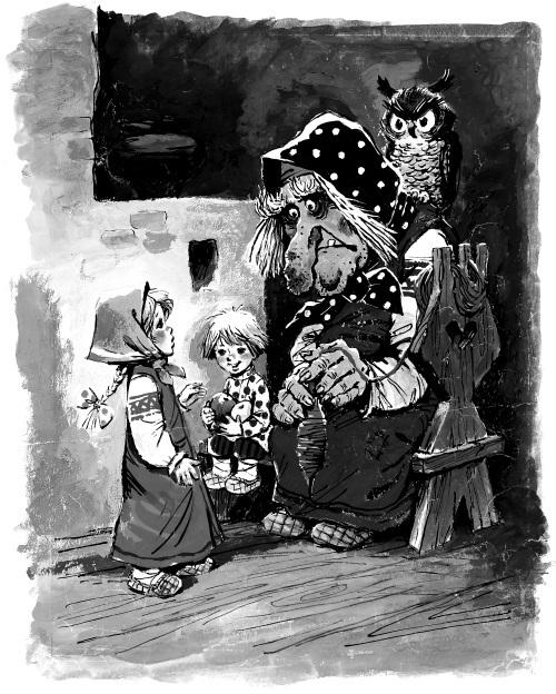 Девочка взяла братца и побежала. А баба-яга подойдёт к окошку и спрашивает: