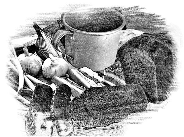 Семёныч важно восседал на пустом деревянном ящике из-под сока между бочками с солёными огурцами. На бочке, как на столе, излучая манящие ароматы и вызывая обильное слюноотделение, красовался натюрморт, достойный кисти художника. Сочные, только что из бочки, солёненькие огурчики, сало с мраморными прожилками, восхитительная копчёная колбаска, луковица и буханка ржаного хлеба — всё было аккуратно, по-хозяйски, нарезано ломтиками и в сочетании с тремя алюминиевыми кружками и трёхлитровой банкой, на треть заполненной прозрачной жидкостью, создавало атмосферу, располагающую к доверительным беседам.