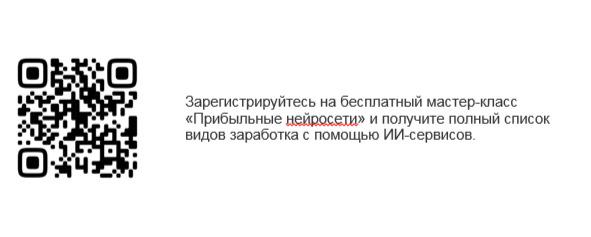 Начните знакомство с нейросетями с бесплатного мастер-класса «Прибыльные нейросети», кликайте по ссылке и регистрируйтесь!