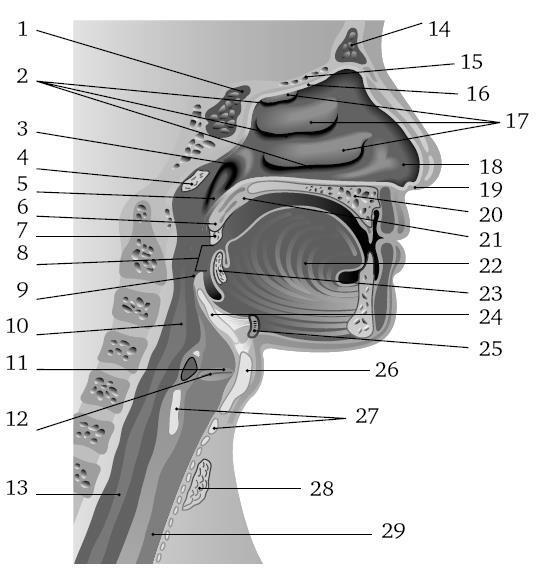 Итак, гортань (лат. larynx) [1] – это орган, непосредственно отвечающий за голосообразование, или фонацию (от древнегреческого phone – звук). Для нас эта функция представляет основной интерес, но с точки зрения эволюции она не является основной. В первую очередь, гортань является частью дыхательной системы и отвечает за прохождение воздуха из полости носа и носоглотки ниже в трахею, бронхи и легкие. То есть основная функция гортани – дыхательная.