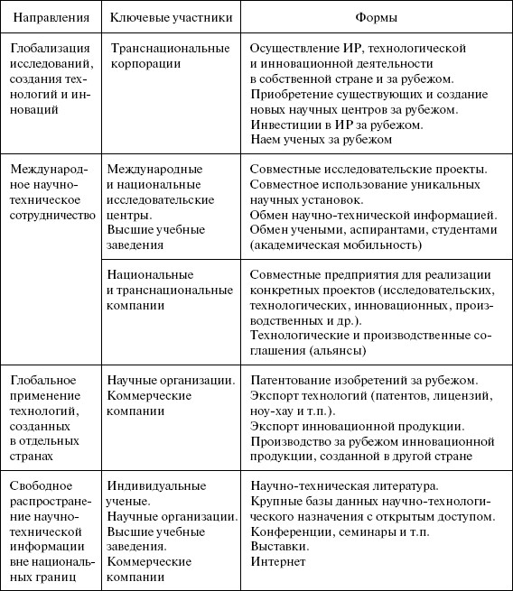 Таблица 1.1. Процессы глобализации в сфере науки и инноваций