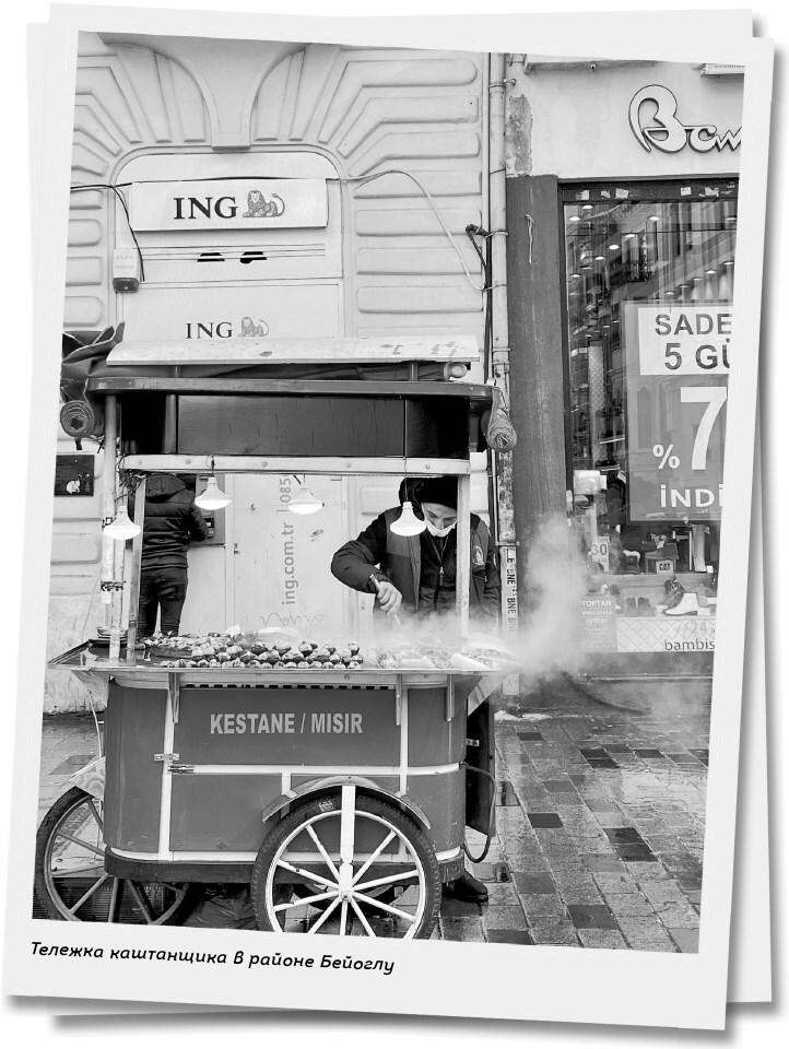Начавшийся сезон каштанов окутывал мою жизнь густым терпким дымом. Непроглядное марево, поднимавшееся над ярко-алыми прилавками улыбчивых «кестанеджи»[4], возвращало в мысли о детстве – о печеной картошке на костре и жареных тыквенных семечках. Чистка каштанов давалась непросто: обжигая пальцы, я с трудом отделяла лопающуюся кожуру от золотистой мякоти, кое-где опаленной до черноты – обуглившиеся кусочки казались самыми сладкими.