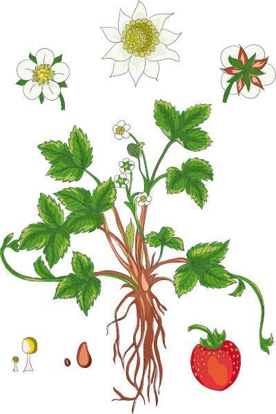 В состав очень вкусных плодов земляники входят (%): вода – 80–90; белки – 0,8–1,0; масла – 0,6; сахара – 4,5—10,0; кислоты – 0,56—1,80 (лимонная, яблочная, щавелевая, салициловая, аскорбиновая). Кроме того, плоды содержат витамины С, А и группы В, РР-0,3 мг, магний – 12–18 мг, йод (8 мг/100 г) и фолиевая кислота (витамин В 9), среднее количество которой может доходить до 0,6 мг %, соединения кальция – 28–42, железа – 0,6—10,9; фосфора – 25–29, меди – 0,01—0,03, калия – 161, натрия – 18 мг, а также пектин, азотистые, дубильные, фенольные соединения; антоцианы; микроэлементы, сухие вещества – 5—24 %. Для восполнения потребности в Р-активных соединениях достаточно съесть 25–50 г, а в витамине С 100–125 г плодов. Энергетическая ценность плодов земляники очень мала, в 1 кг содержится 390 ккал из-за высокого содержания воды. Содержащиеся в них жиры состоят из полиненасыщенных жирных кислот (Справочник 1977; Bauer, 1960).