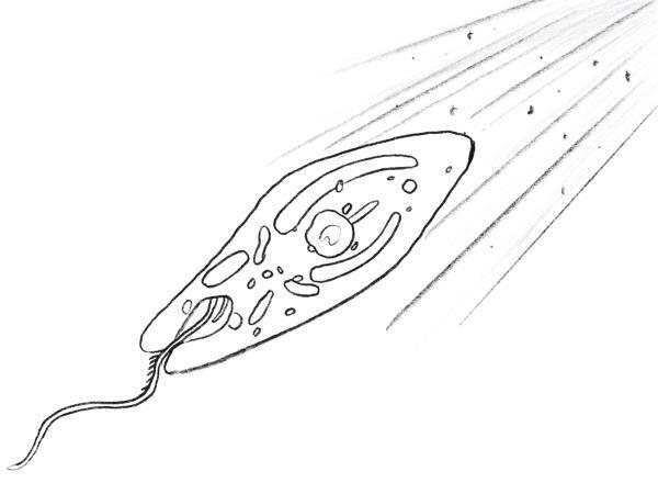 Если на светочувствительное пятно эвглены падает свет, двигательный жгутик автоматически начинает сокращаться и вращаться так, чтобы вся клетка двигалась по направлению к освещённой области. А поскольку эвглена питается с помощью фотосинтеза, то фототаксис обеспечивает ей эволюционный успех: она постоянно на свету, а значит – при неограниченном питательном ресурсе.