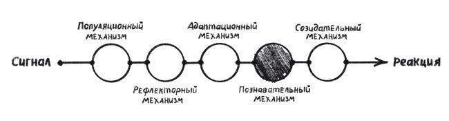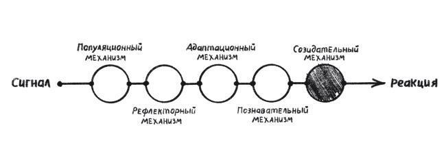 Теперь мы знаем, что наше мышление – это работа биологических механизмов, преобразующих сигнал в реакцию. Механизмы эти появлялись последовательно и давали животному дополнительные возможности для выживания и продолжения рода.