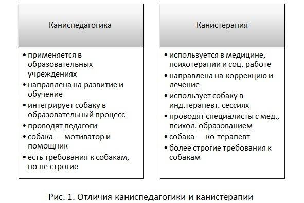 Однако, предлагается использовать написание «каниспедагогика» по аналогии с «канистерапией», чтобы акцентировать на их близости, конвергенции.