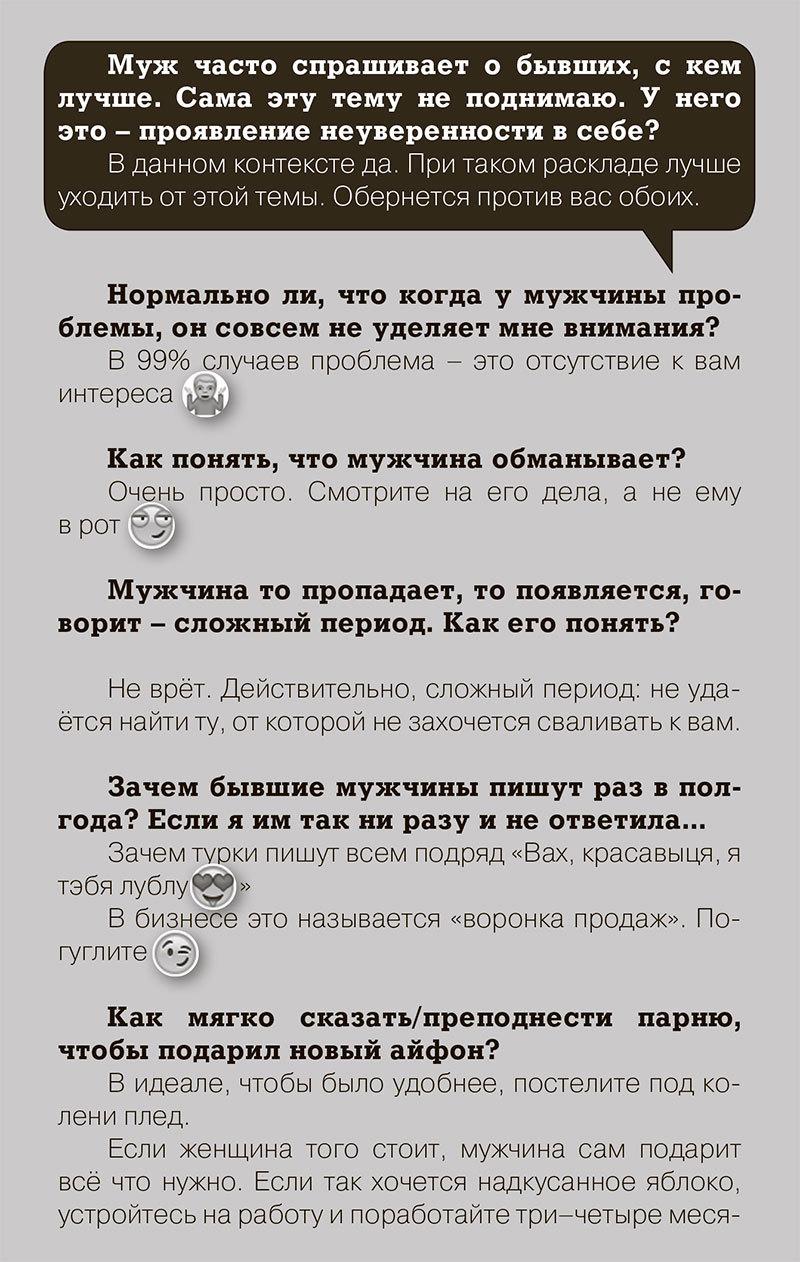 Итак, задав этот вопрос, вы снижаете риски дальнейшего разочарования. Если ответ: «Мы уже давно живем как соседи и вообще не занимаемся сексом», то это шаблонный ответ, прописанный природой в мужской «прошивке», и на 99 % яв