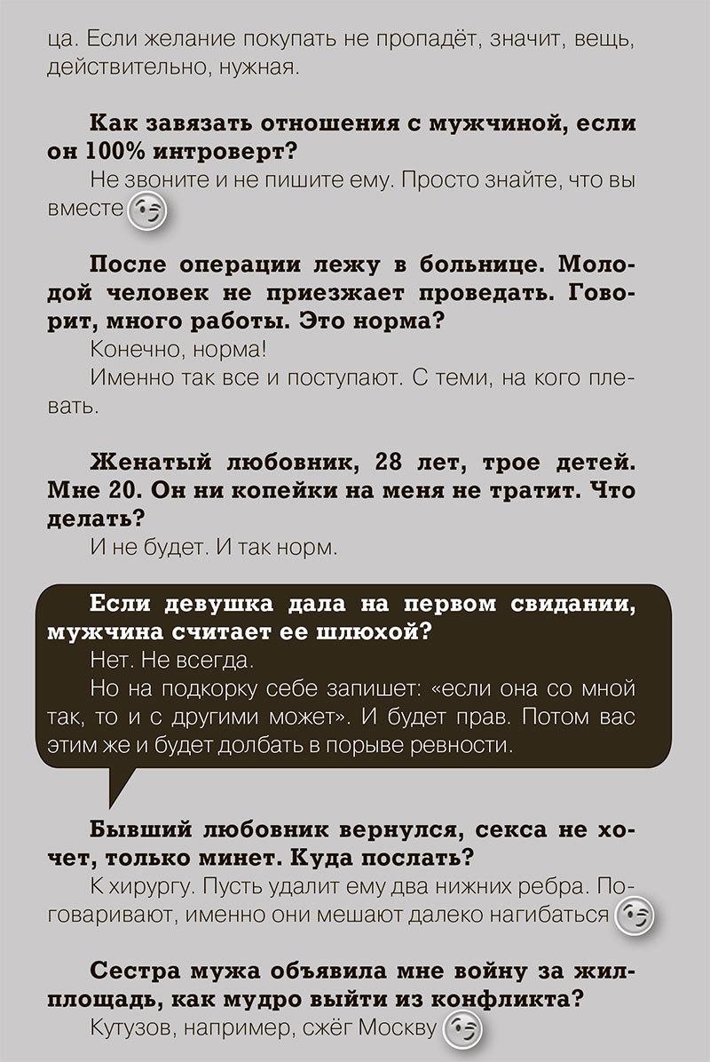 Начнем с момента знакомства и первого свидания. Конечно же, если вам самой очень хочется секса, и не так важны последующие отношения, эту главу можно не читать. Но потом не задавайтесь вопросами, почему вас бросают или пропадают наутро и почему он больше не звонит. Или как быть, если вы, сами того не зная, оказались в роли любовницы. И почему вы до сих пор одна?!