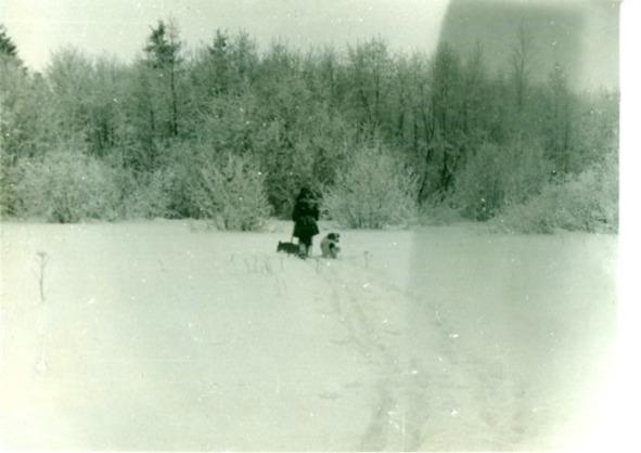 Поменявшись обувкой он попросил меня медленно повернуться взад себя. Метрах в 20 на чистовине стоял волк… так себе… большая собака. Мы же двое! И у нас топор и пила. Темнело. Алюминиевые санки предательски зарывались в снег… Мишкины же бежали как по накатанному. Так мы и шли домой по старой лыжне с топором и пилой в одной руке и санками сзади. Метров через триста меняясь обувкой и местами… кто спереду, кто с заду… метрах также в 20 от нас боком трусил волк… на нашу лыжню он не выходил. От Мишкиной деревни мне оставалось метров 800 тракторной катанки. Деревенские собаки вовсю захлёбываясь заходились в истовом лае. Последний раз поменявшись обувкой Мишка проводил меняя словами: «иди и не бойся… он не тронет…» Уверенности у меня не было. Но 800 метром я уже бежал без лыж… Спотыкаясь и подскальзываясь… на промерзших и обледенелых лыжных ботинках.