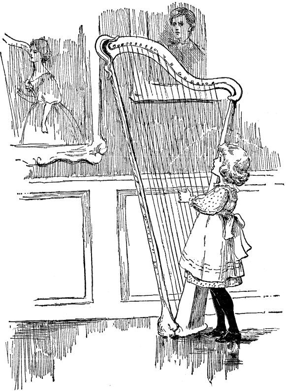 He took her on his knee, and pointed up to the portrait. The same harp was in the picture. Standing beside it, with one hand resting on its shining strings, was a young girl all in white.