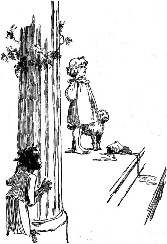 At that very moment he had caught the rattle of wheels along the road, and had picked up his field-glass to see who was passing. It was only a coloured man jogging along in the heat and dust with a cart full of chicken-coops. The Colonel watched him drive up a lane that led to the back of the new hotel that had just been opened in this quiet country place. Then his glance fell on the two small strangers coming through his gate down the avenue toward him. One was the friskiest dog he had ever seen in his life. The other was a child he judged to be about five years old.