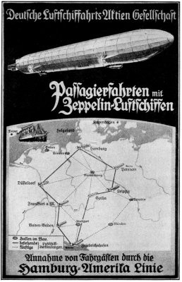 Zeppelins, only slightly larger than those actually flown during the last few months of the war, are capable of safely and quickly making a non-stop flight from Berlin to Chicago and from New York to Paris in 56 hours, carrying 100 passengers and in addition 12 tons of mail or express matter.